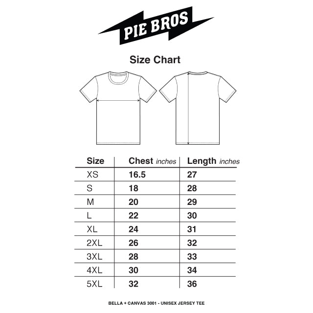 Pie-Bros.com is the only place to purchase our t-shirts. We do not wholesale or sell through any other platforms.