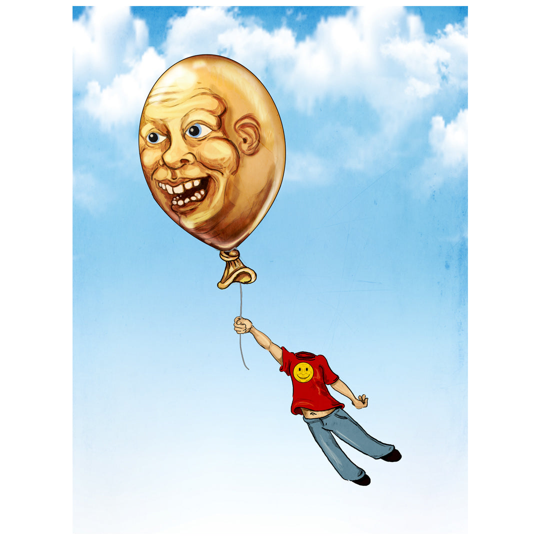 - Imaginative Design: A whimsical balloon head floating among the clouds, embodying dreamy creativity.